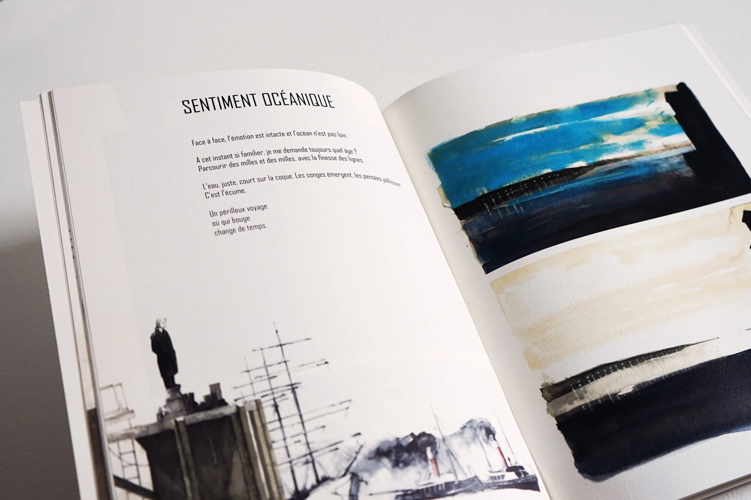 Une histoire commence puisque l’eau part et on ne la reverra jamais. Le fleuve est immuable alors que l’eau, maintenant nous accompagne. Nous appellerons acte poétique ces instants où la vie devient picturale, musicale. Un poème graphique dessiné par Raphaël Bernard et mis en musique par Christophe Cozette.